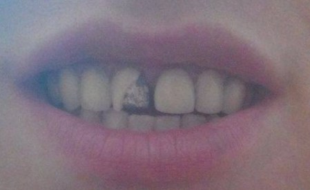 În încercarea mea de a-i desface un capac de apă fetiţei mele, cu dinţii, capacul a câştigat şi a luat şi un trofeu: jumate de dinte !