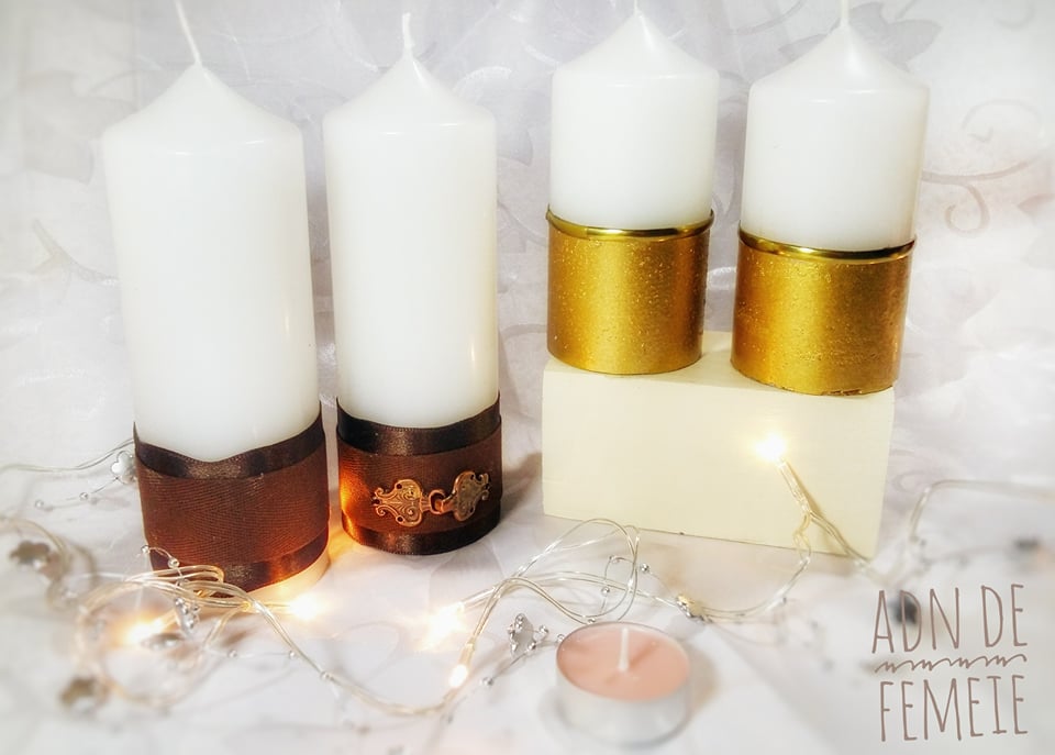 Cum pot fi lumânările care sunt aşezate pe masă. Lumânări ce sunt în culori metalizate. Nu ştiu de ce am eu această idee legată de culorile metalizate la nunta în stil medieval.