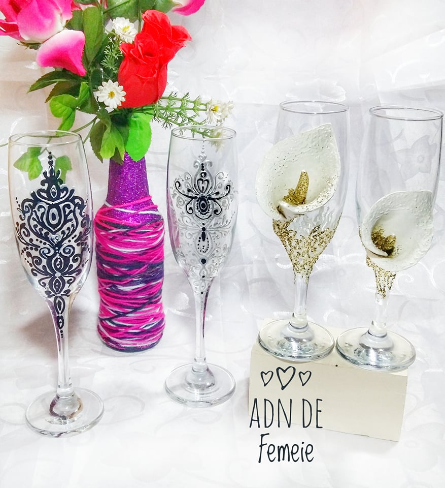 Cred ca este o idee geniala. Nu m-am gandit la aceste detalii cand am facut nunta. Imi plac mult acele pahare decorate