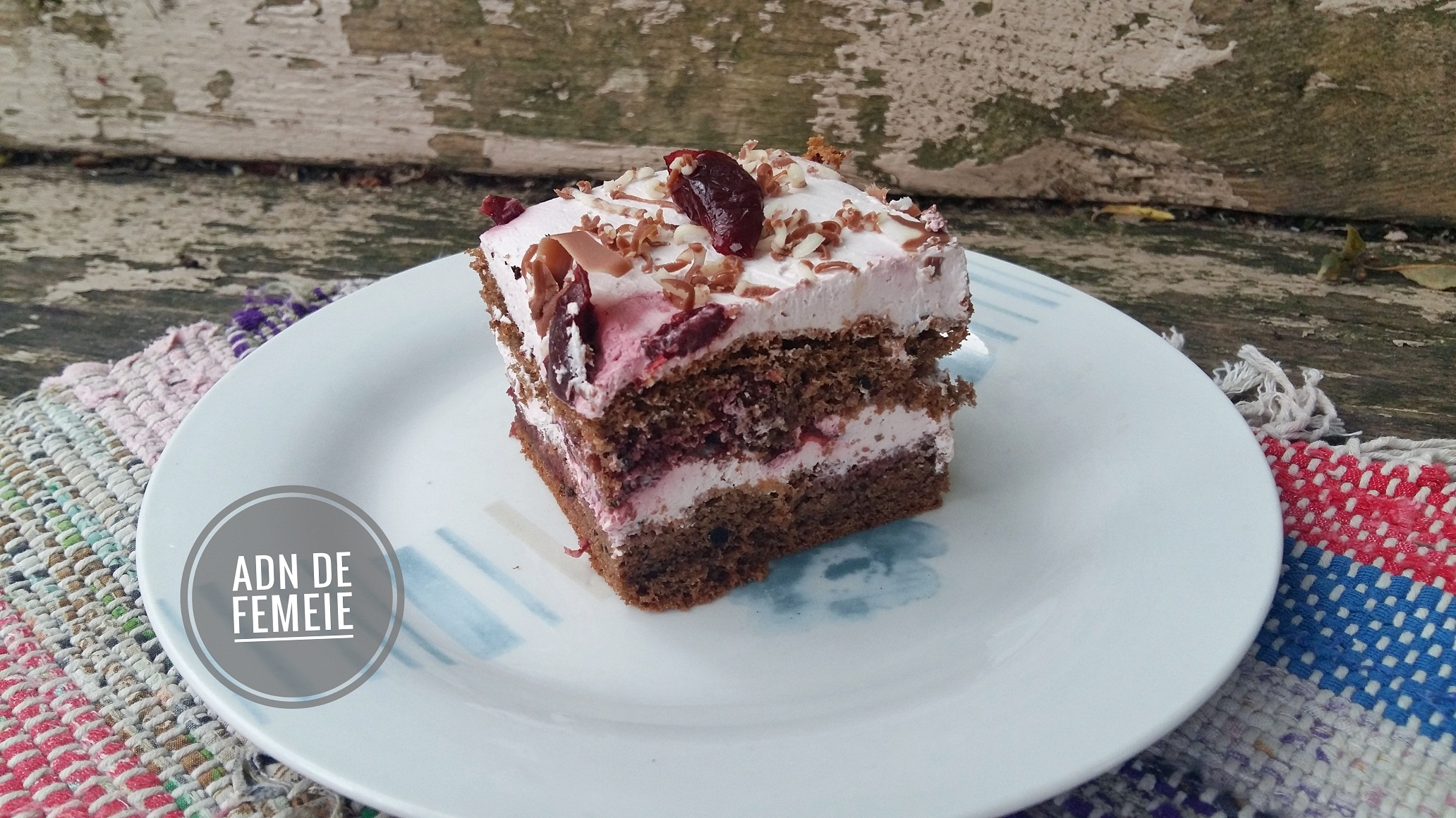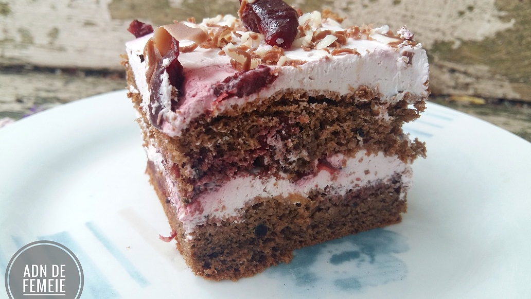 După gust seamănă cu prăjitura ” Pădurea Neagră”. Mă duce tare mult către acea prăjitură, chiar dacă aspectul încă nu este de acolo. Dar prăjitura care îmi îndulcea mie unele zile mai negre de la birou (pe vreme când lucram la birou), era tare aproape de ceea ce am făcut eu în acest weekend.