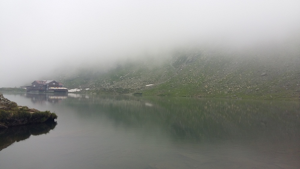 Noroc cu parcarea, improvizată cred, unde ne-am putut lăsa maşinile şi să mergem şi noi pe malul faimosului lac din vârf de munte (vorba vine). A fost foarte rece, iar priveliştea părea mai degrabă de iarnă decât de vară. Nu am îndrăznit să urc pe sus, pentru poze sau alte privelişti. Am văzut de jos şi zăpada şi norii 😉