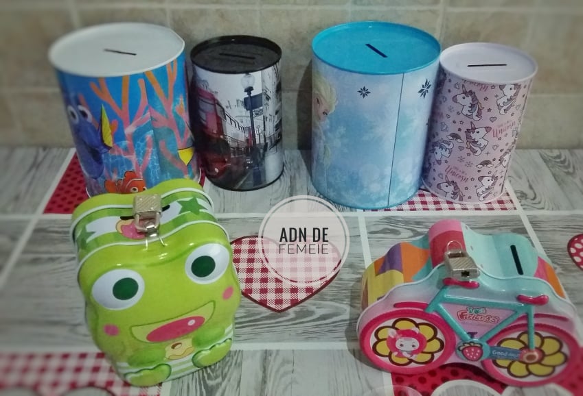 Și mai important de reținut este faptul că am ales trei pușculițe diferite. Una mai mare pentru economii și una medie pentru donații. Aceste pușculițe nu au posibilitatea de a fi accesate 🙂 Iar pușculița mică, este pentru cheltuieli și este una la care se poate apela în caz de nevoie.