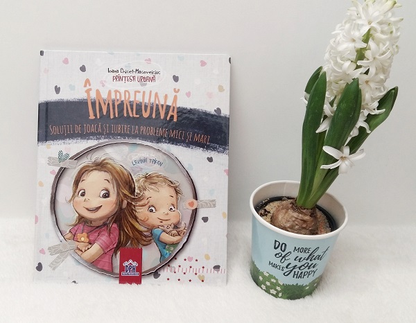 ” Cartea „Împreună” conține zece episoade simpatice cu soluții de dialog și joacă la tot atâtea situații problematice care apar în viața celor mici. De exemplu, nașterea unui frățior. Sau începerea grădiniței. Ori statul în scaunul de mașină, conflictele cu copii războinici, crizele de furie, spălatul pe dinți sau adormitul seara. Toate aceste hopuri sunt depășite grațios, cu glume și iubire, iar în cele din urmă, familia se bucură de timp frumos împreună.”