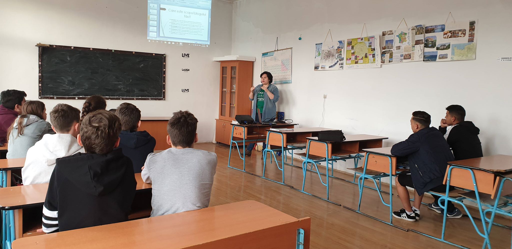 Dna lor diriginta, profesoara de engleza și franceză, mă cunoaște din mediul online. Adică, nu am avut ocazia să ne întâlnim face-to-face până acum. Și dânsei îi place activitatea mea din mediul online și m-a contactat cu propunerea de a prezenta ceea ce fac eu, copiilor de la dânsa din clasă.