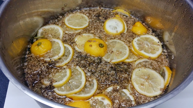 6 litri de apă, 6 kg de zahăr, 3 kg de lamâi, 4 kg de flori de soc.