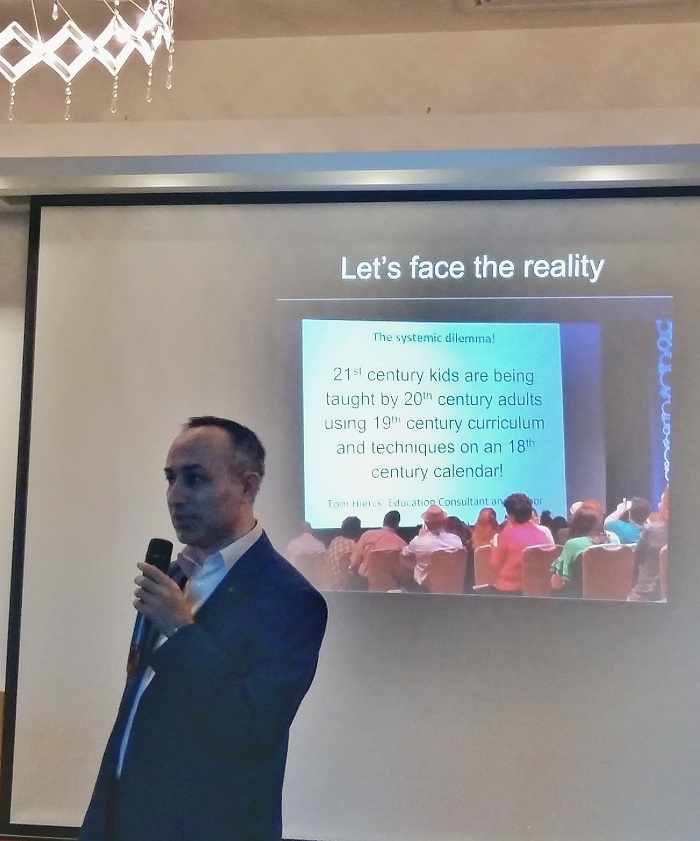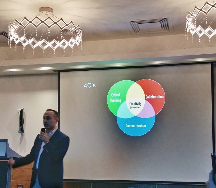 Ca director al International School of Bucharest, tema prezentată de dânsul a fost ”Creativity in action- How we walk the talk”.