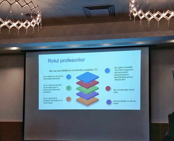 Un alt aspect care contează în abordarea modernă în școli, ține și de uneltele de predare. Pozele de mai jos surprinse din prezentarea dânsului sunt unele destul de sugestive!
