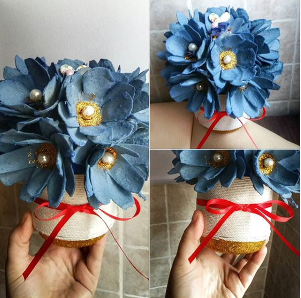 Noi am folosit aceste flori pentru a decora un borcan 🙂
