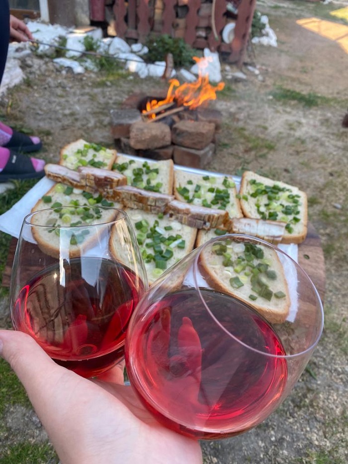 Cel mai simplu lucru posibil cât am fost la sat, a fost să ne bucurăm de cele mai mici momente. Ca atunci când am impovizat și am pus de-o pită picurată cu clisă pe un pat e ceapă verde, acompaniată de un pahar de vin și o soră faină!