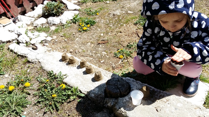 Fetița a dat încă o dată dovadă de creativitare. A găsit un colț cu nisip, a luat paharele de plastic pentru pălincă a bunicii și a trecut la joacă. Multe prințese s-au plimbat pe lângă castelele cu nisip din acea zi.