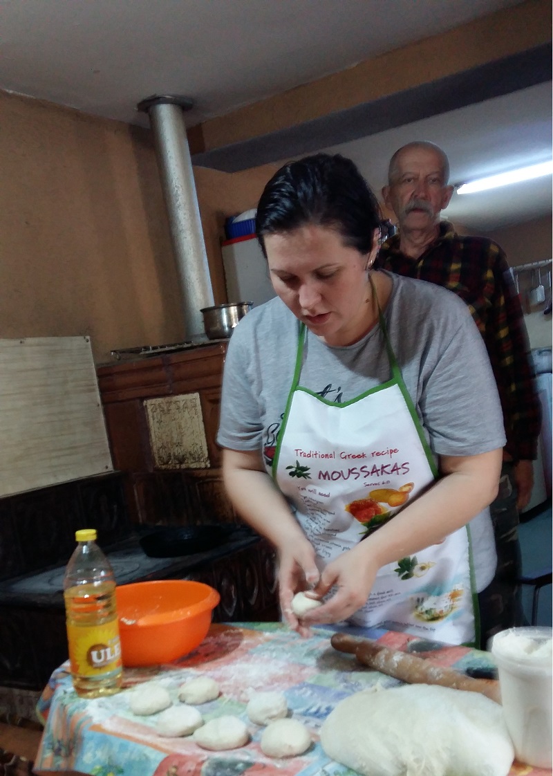 Am făcut și plăcinte în sat. Tata mi-a fost asistent. Plăcintele făcute pe sobă au fost delicioase și au fost savurate mai cu patos de cei din jur!