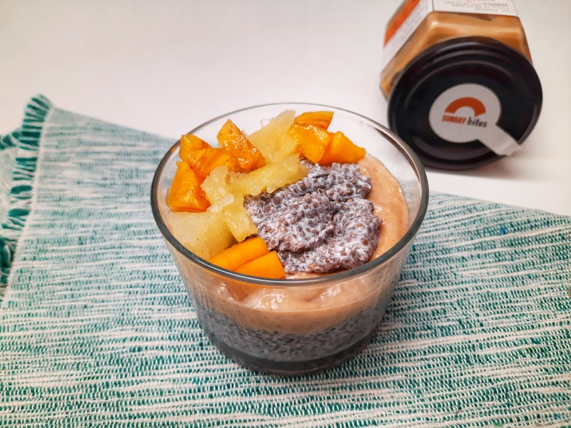 Ananas, cocos, kaki, unt de arahide, banană și semințe de chia. Poate această combinație să merite denumirea de budincă de chia tropicală? Hai să vezi ce am meșterit în bucătărie pentru un desert rapid și delicios de simplu.