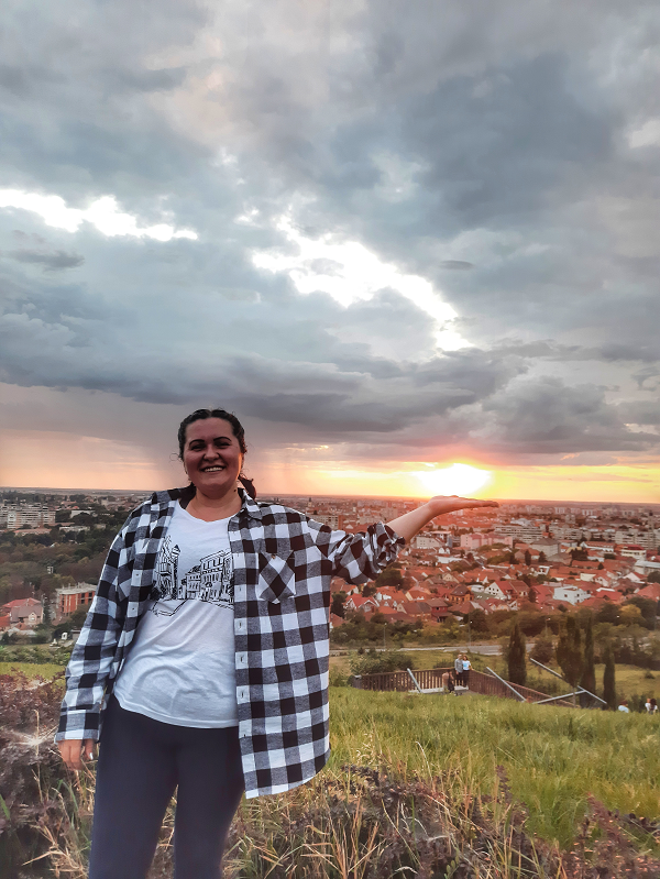 Prima pauză de pe traseu am făcut-o atunci când am ajuns în centrul orașului. Acolo am intrat în trafic și ne-am tras suflul înainte. Am continuat până am ajuns la poalele dealului Ciuperca, de unde am pornit la pas spre vârf. Acolo ne aștepta Alina cu bunătățile și cu o priveliște de vis!