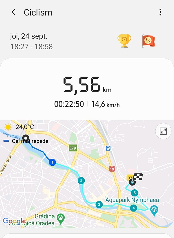 Traseul cu bicicleta a durat 22 de minute și 50 de secunde și a avut lungimea de 5,56 km!