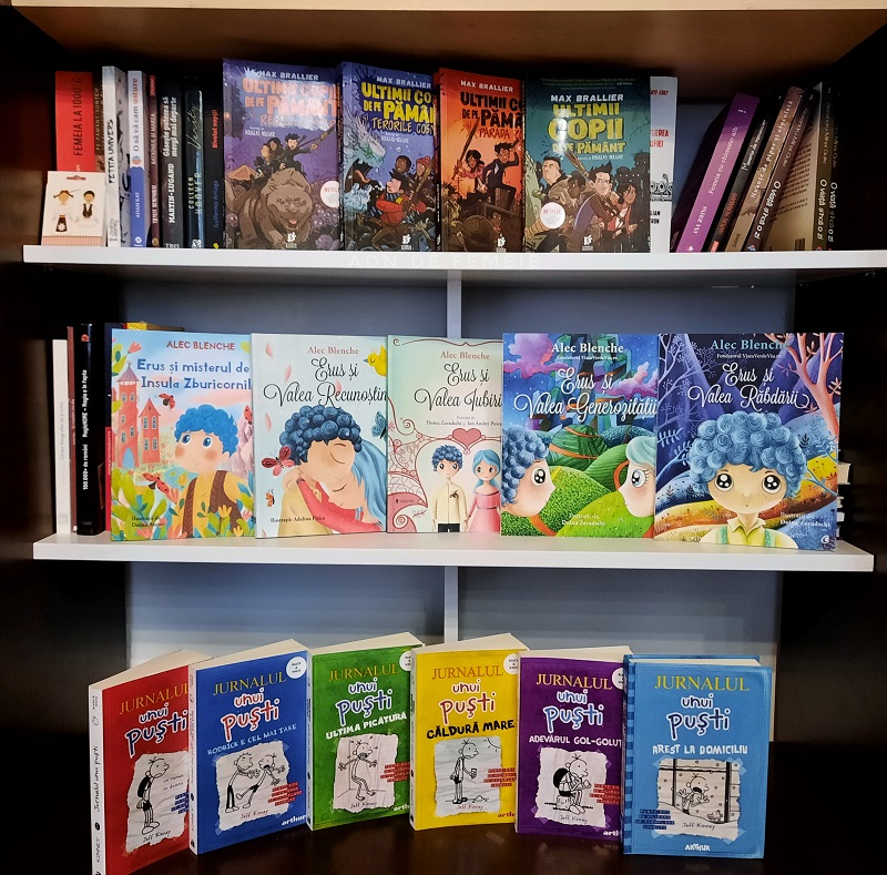 Și noi avem toată colecția din ” Jurnalul unui puști” și ‘Ultimii copii de pe Pământ” pe lângă colecția de cărți Minecraft și Fortnite .