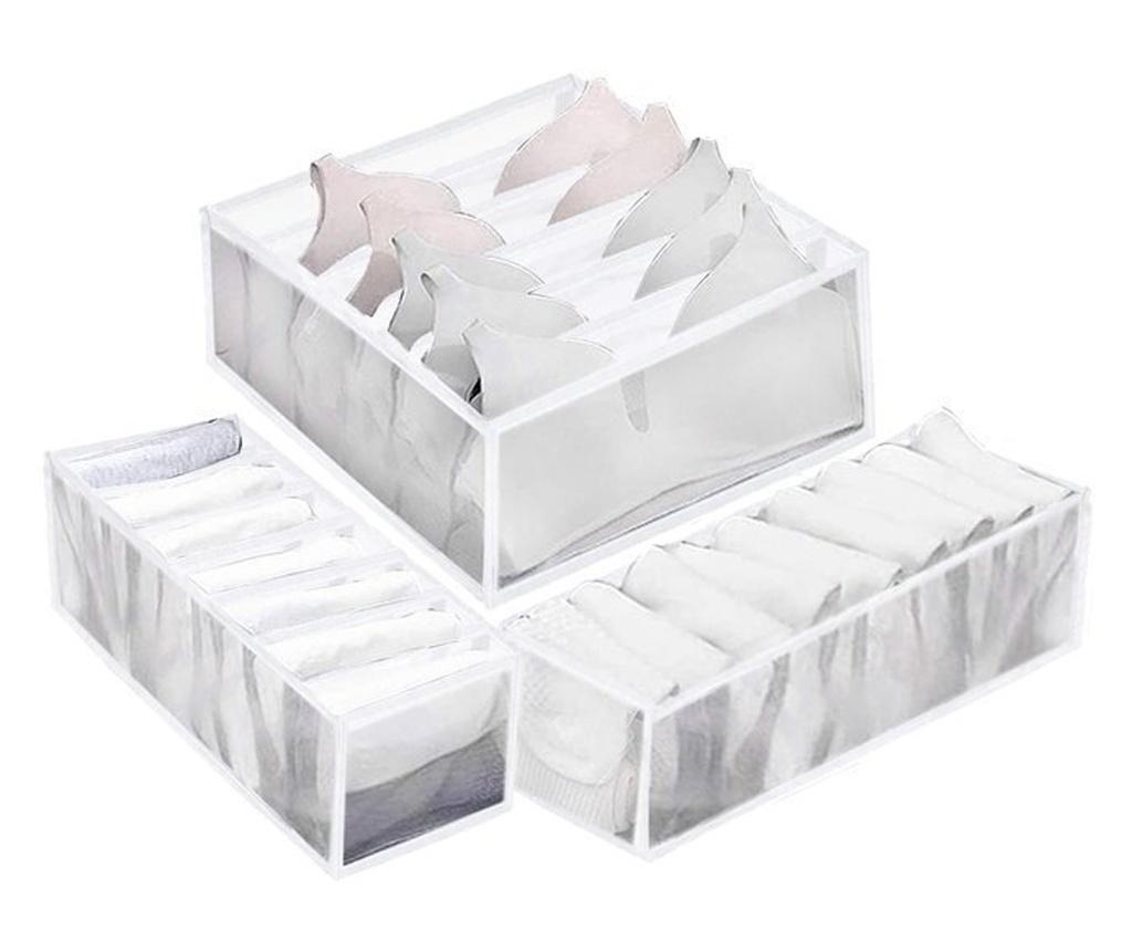 1, Depozitare în sertare. Încearcă să ții sertarele aerisite când vine vorba despre lenjeria intimă & accesorii. Da, sunt numeroase moduri în care poți împătura și organiza piesele vestimentare delicate. De aceea un organizator pentru sertar compartimentat și transparent îți poate fi de mare folos. Modelul acesta este un bun punct de pornire.