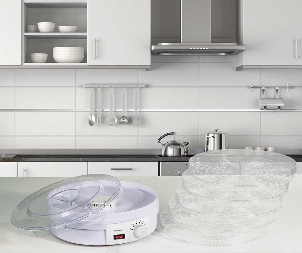 5, Depozitarea fructelor și legumelor proaspete poate fi mai ușor de făcut în cazul în care ai exces… cu ajutorul congelatorului. Te folosești de caserole sau cutii din plastic, le împarți după preferință și le poți păstra în congelator într-o stare mult mai bună ca varianta de păstrare în cămară. Sau le poți usca. Cu ajutorul unui deshidrator de alimente.