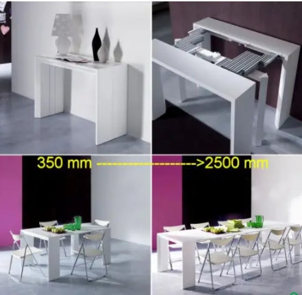 Acesta este doar un exemplu de cum ar arăta o masă ce are încorporat mecansimul pentru masa extensibilă. Se livrează doar mecanismul. Partea de lemn/ placaj sau alt material ce va forma masa nu este inclusă.