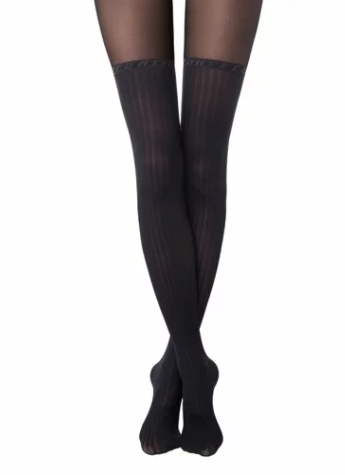 Ciorapi cu model raiat și imitație jambiere Conte Elegant Glam 40 den – De avut la îndemână în eventualitatea în care ajunge vreo rochie mai scurtă pe mâna mea sau vreo bluză super overized ce ar merge bine cu cizmele de catifea cu toc..