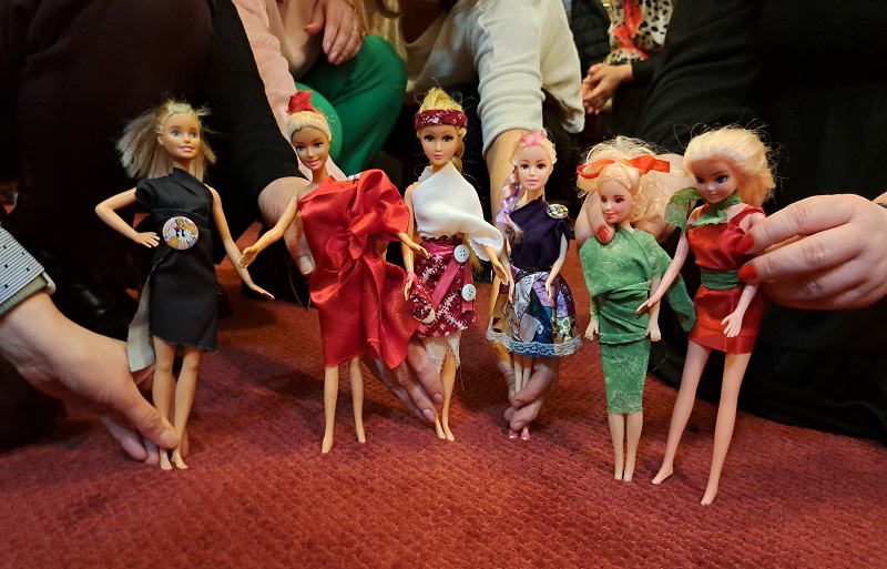 Surpriza plăcută pentru mine a fost impactul avut de exercițiul de la final, în care au fost implicate păpuși, materiale textile, accesorii și creativitatea participantelor. Da, poate părea că ne-am jucat cu păpușile, dar activitatea pusă în contextul potrivit, dezvăluie multe despre fiecare persoană. Și m-a surprins dedicarea și entuziasmul și seriozitate și bucuria cu care au creat pentru acele păpuși ținute vestimentare de la zero, dar au prezentat și contextul în care au gândit că s-ar potrivi totul.