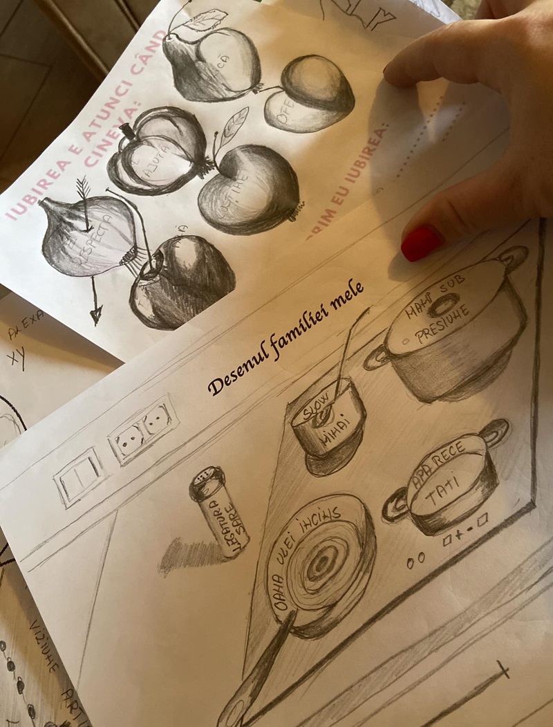 La partea cu talentul am eu dubii. Mai ales pe partea de pictură. Probabil și pentru că mă compar cu tot felul de artiști sau lucrări ”țiplă”… chiar și cu soțul, care are pictura și desenul „în sânge”, fiind la un moment dat și profesor de desen la clase de gimanziu timp de doi ani. O să-ți las mai jos un exemplu când ajung la partea de poze cu exemple.