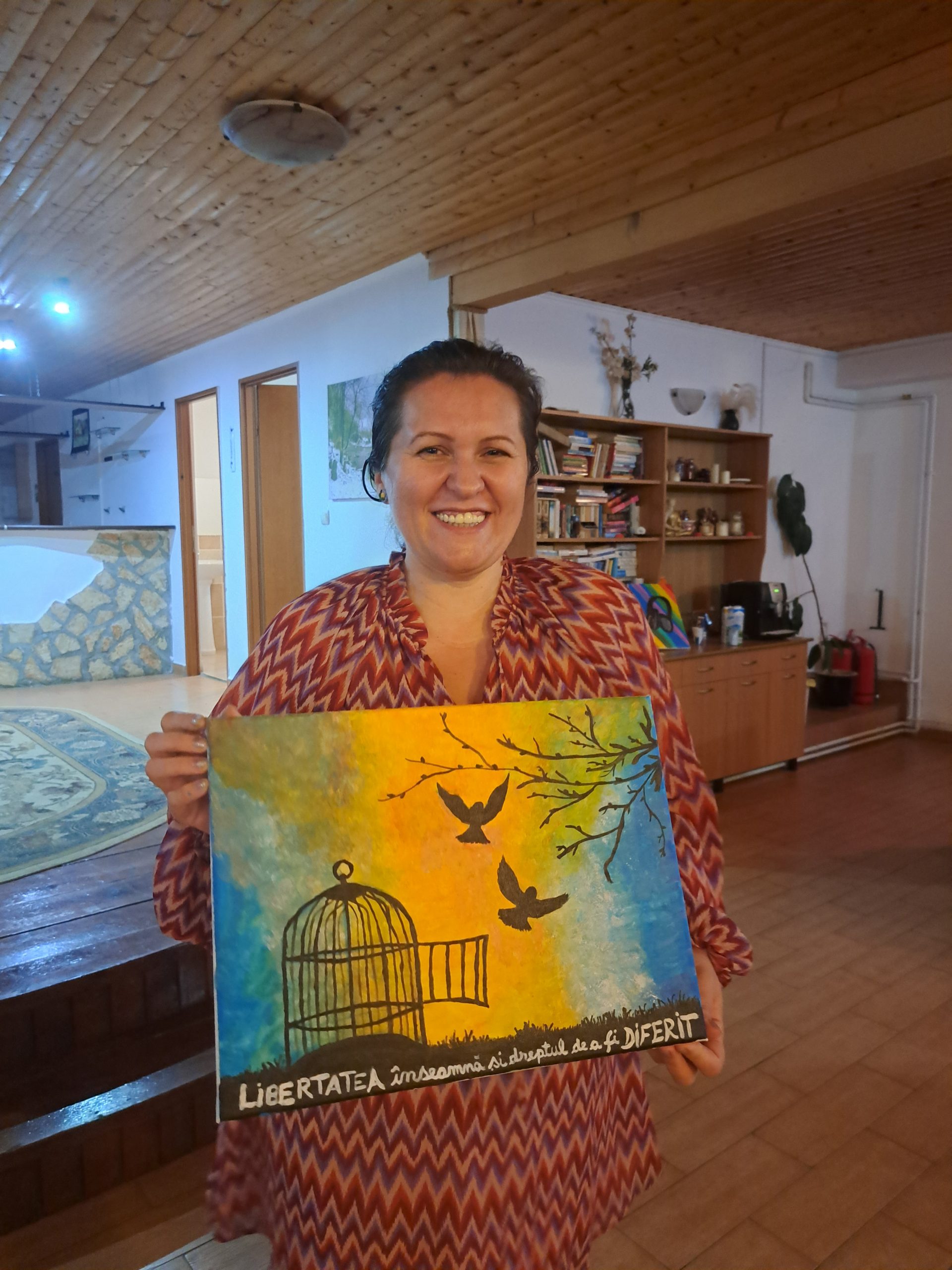 Am pus câteva materiale cu această pictură în mediul online și cineva drag mie mi-a făcut o invitație de a mă alătura ei la o activitate în care era inclusă și o parte cu pictură. Așa am ajuns la Beznea, la Casa Delureni alături de Daniela și pe punctul de a mă ”îndragosti” de Laura de la Smartistactiv. Nu de alta, dar eu nu mă vedeam pictând de una singură ceea ce am reușit să pictez alături de ea.