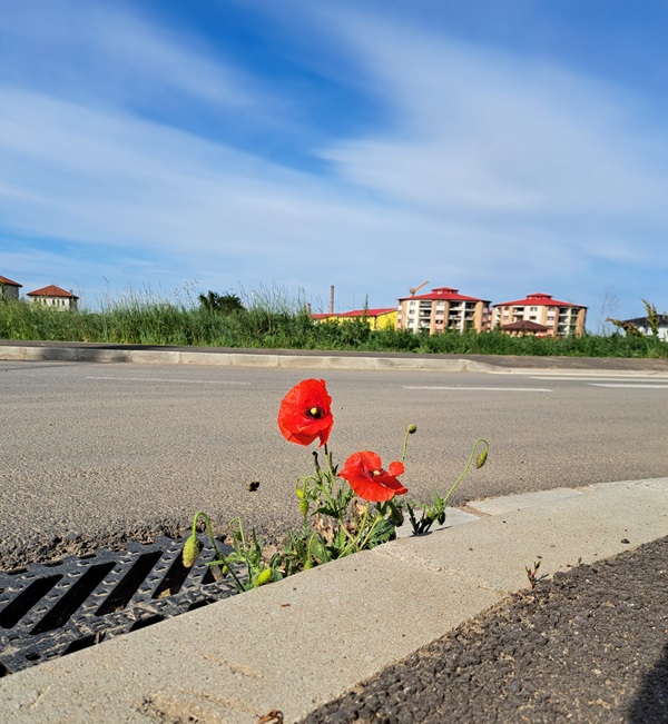Apoi am fost să pozez floare de mac de pe strada Macului. Foarte fain contrastul.