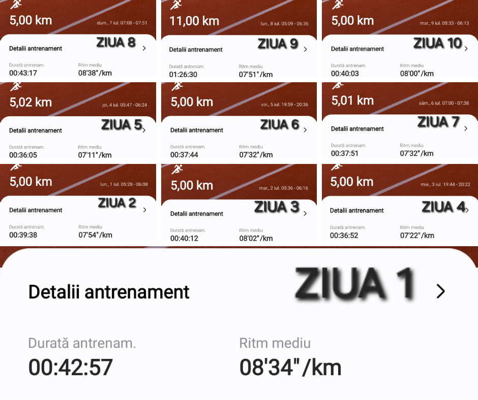 P.S. – După cele 10 zile de alergare zilnică, au urmat 2 zile de pauză și apoi iar alergare/. Și zău că mi-a fost dor și m-am simțit extraordinar. Dar și corpul are nevoie de pauză : )