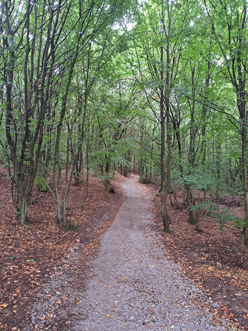 Din locul unde am parcat mașina am pornit spre dreapta, pe cărarea cu piatră cubică, pe lângă pădure.