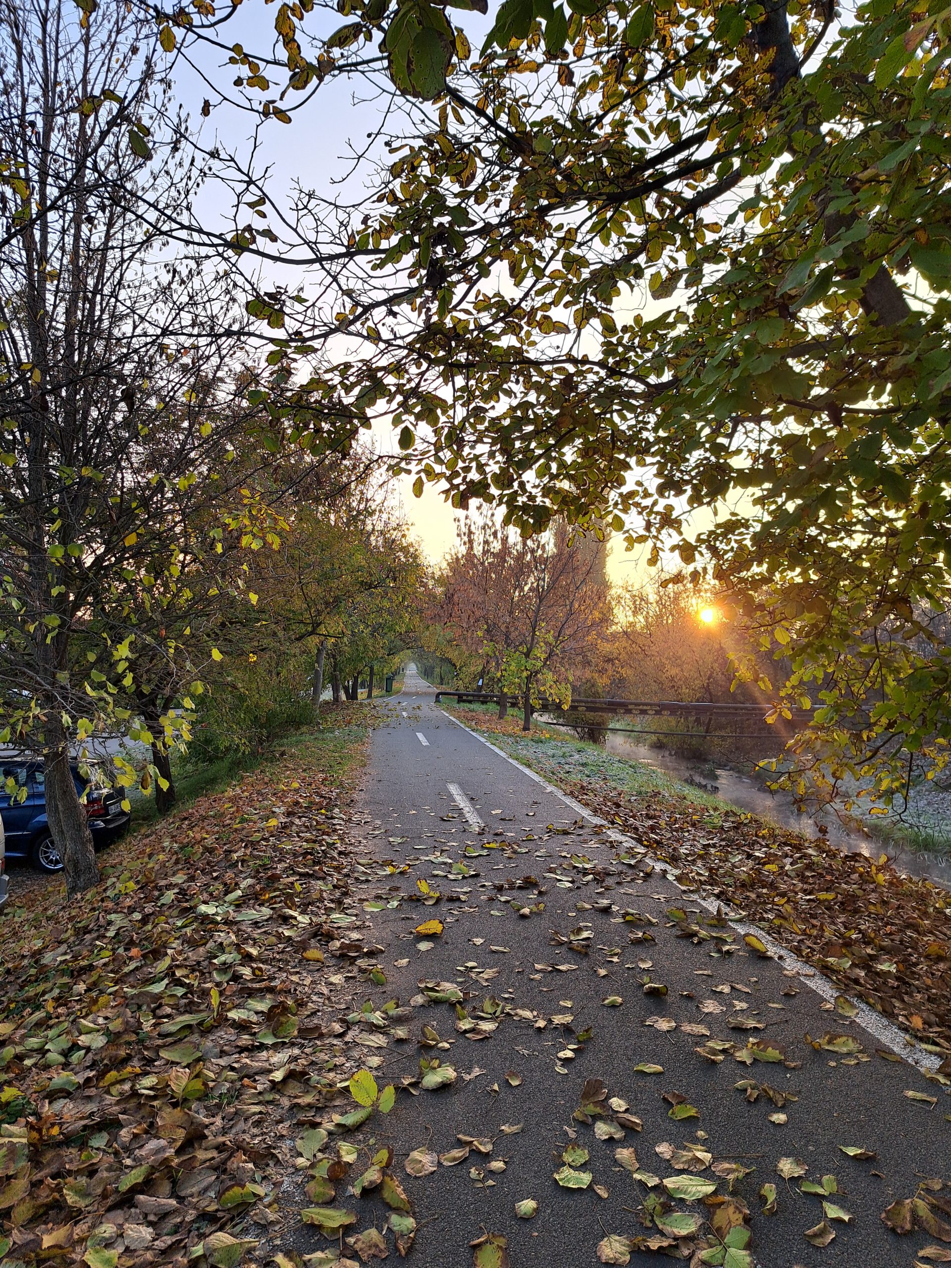 Dar mi-a prins tare bine aerul în esență tare, iar priveliștea de pe traseu este una care-mi bucură privirea si gândul. De n-ar fi fost așa fi frig și eu „oleacă” transpirată, sigur aș fi stat mai mult pentru a admira culorile, texturile, rațele de pe râu, soarele printre frunze căzătoare….