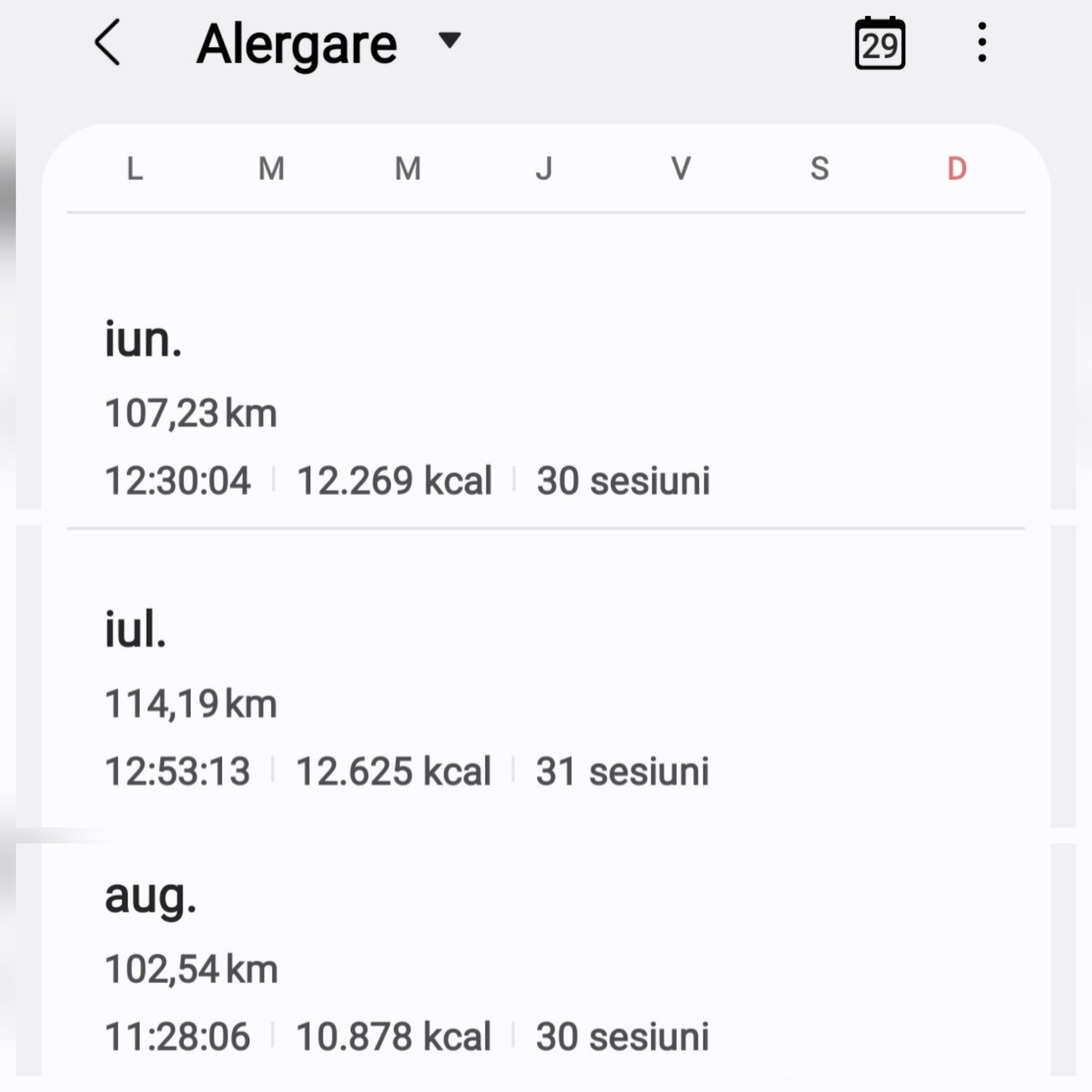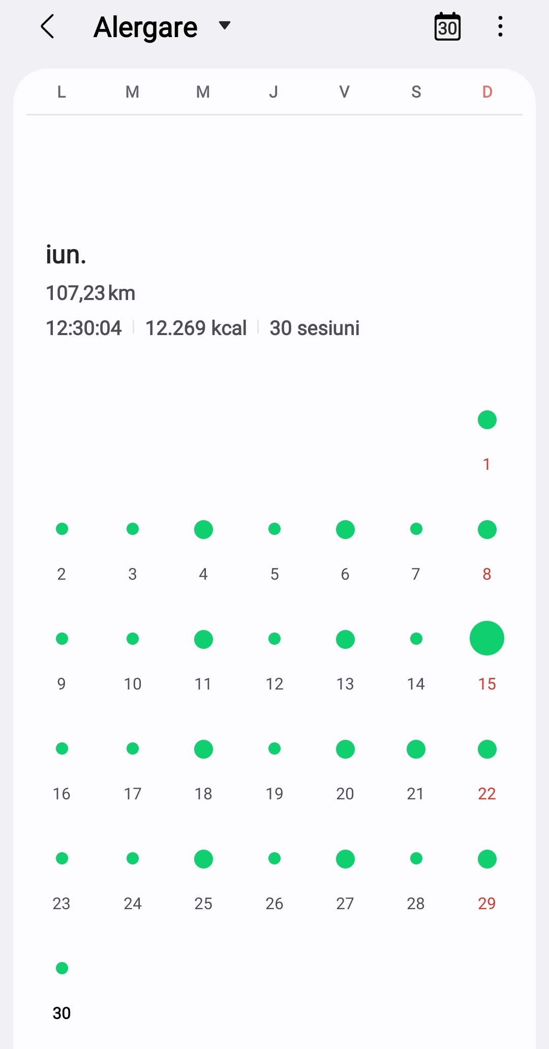 După 30 de zile cu alergare zilnică de minim 2km așa arată „calendarul” și raportul lunii iunie.