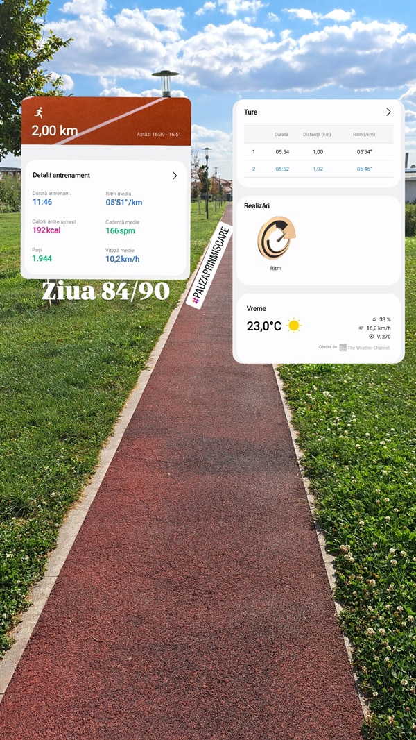Acum mă uit cu bucurie la cele 90 de zile care au trecut și pare că au trecut repede. Și că totul a fost ușor și toate s-au aliniat cum trebuie. Și aleg să rămân cu această impresie generală care să-mi alimenteze următoarele zile din viața mea in care voi alege zilnic alergare.
